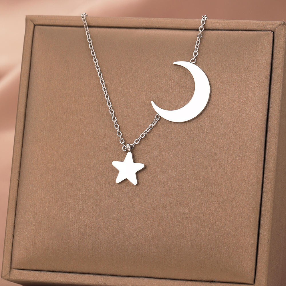 Stainless Steel Necklaces Elegant Exquisite Star Moon Pendant Collar Chain Korean Popular Necklace For Women Jewelry New Silver Color – Sumsfashion