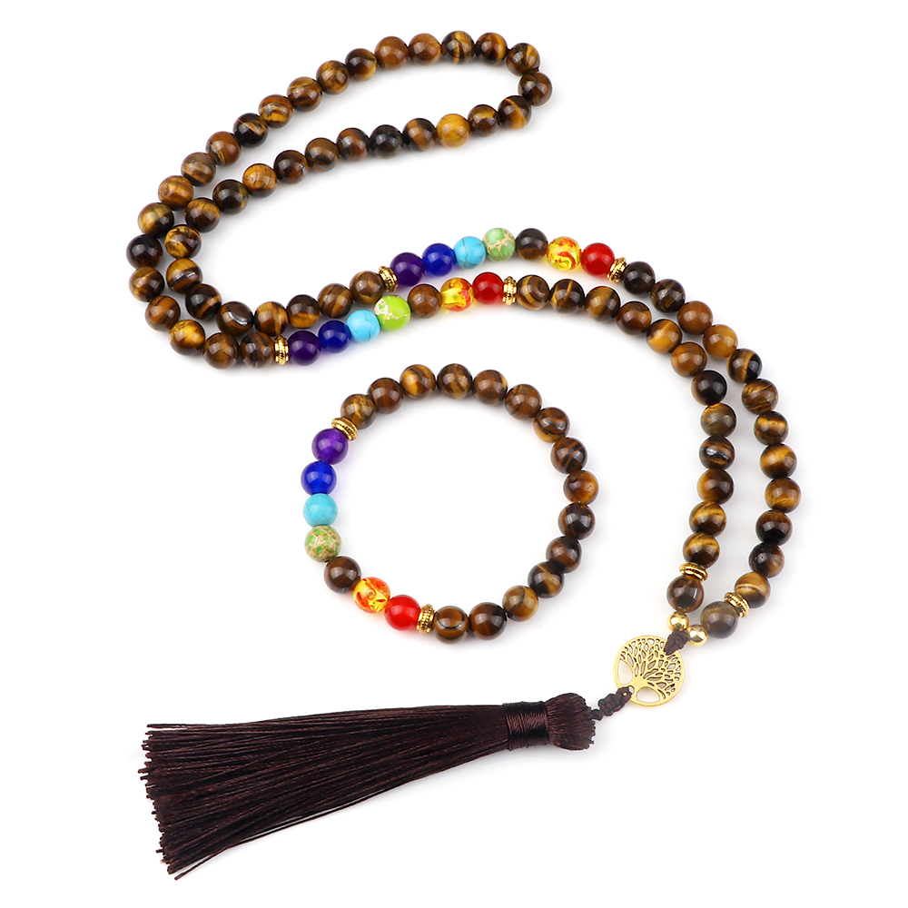 I was looking for something that was both stylish and meaningful, and I think I found it. I saw a really cool Tree of Life 7 Chakra Beaded Necklace & Bracelet Men 8mm Tiger Eye Stone Beads 108 Mala Bracelet Women Ethinc Prayer Jewelry 8mm Tiger Eye. It's perfect for adding a touch of personality to my outfits. The tiger eye stone is believed to bring good luck and protection, which is a nice bonus.